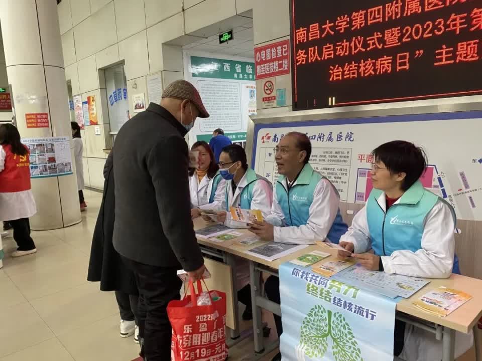 本网讯(第四附属医院)3月24日是第28个“世界防治结核病日”。上午9点,南大四附院在门诊大厅举办健康保健志愿服务队启动暨“世界防治结核病日”宣传活动。副院长刘泽林出席活动并为志愿宣传活动授旗。志愿服务队队长由预防保健科科长宗芳担任。