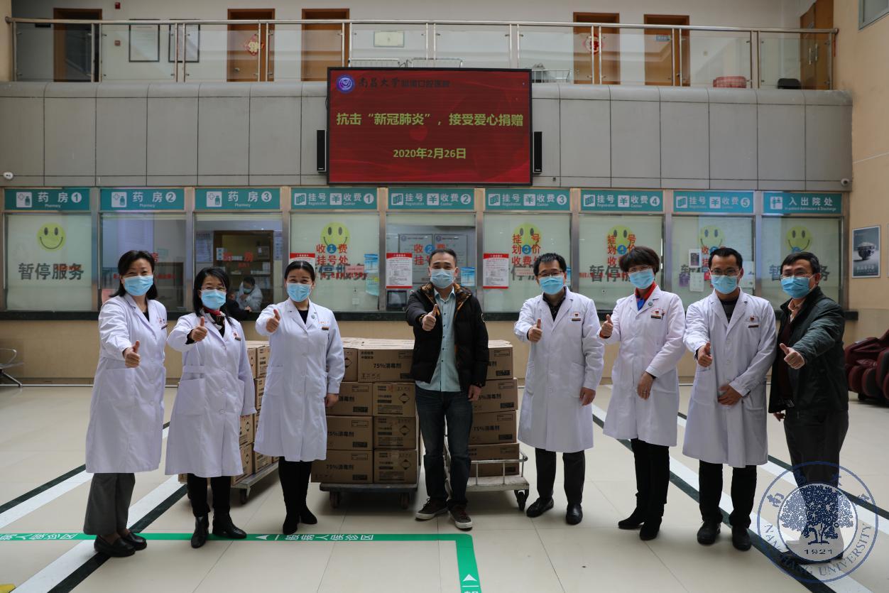 本网讯(附属口腔医院)2月26日,江西同济恩莱茵医科发展有限公司向南大口腔医院献上爱心,捐赠了“好顺”牌75%乙醇消毒用酒精40箱960瓶。以实际行动贡献企业力量,助力打赢“新冠肺炎”疫情防控阻击战。该院党委书记廖岚、院长杨健、党委副书记陈美华、纪委书记严晓兰代表医院接受捐赠。