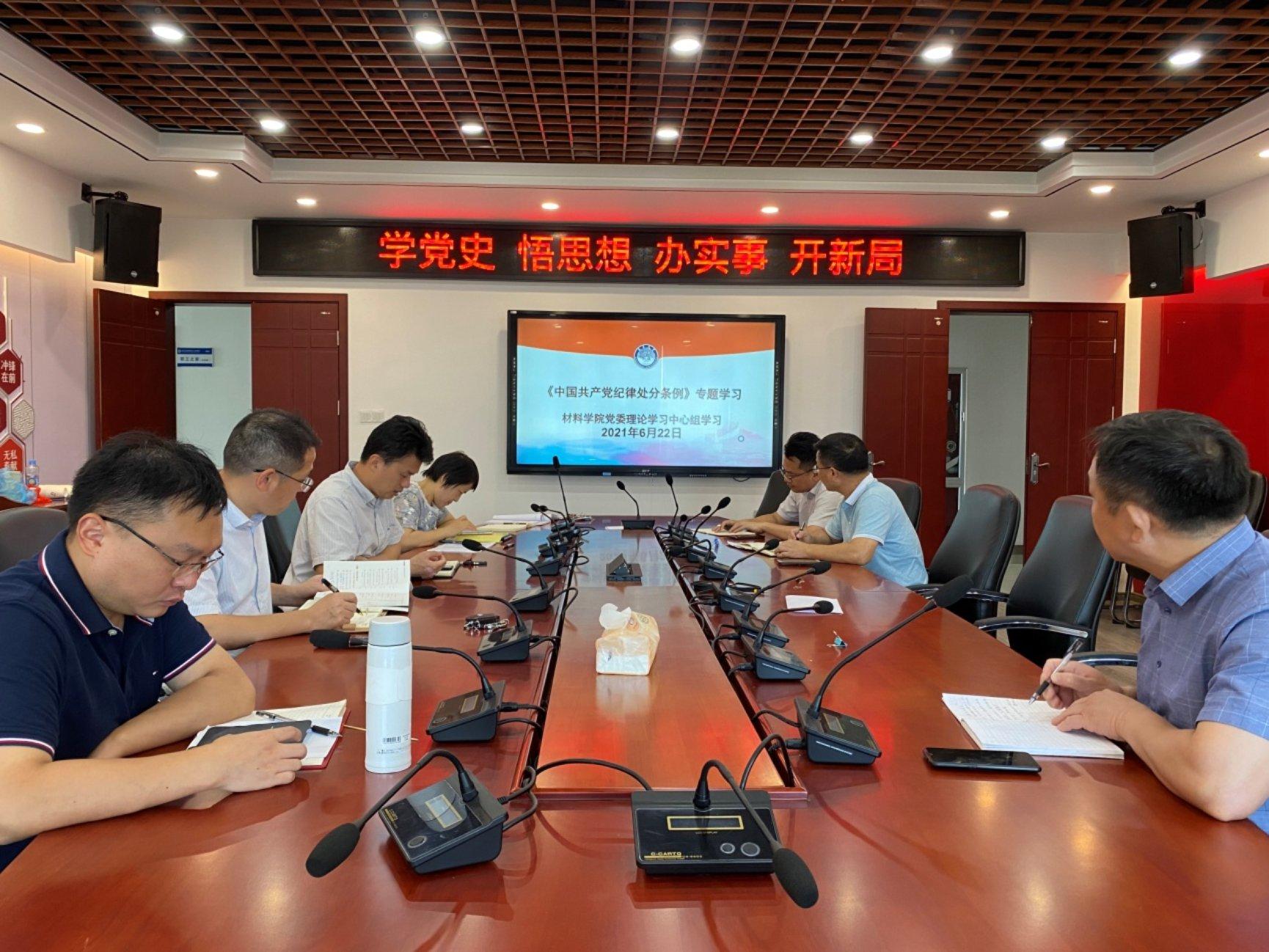 本网讯(材料科学与工程学院)6月22日上午,材料科学与工程学院党委理论学习中心组专题学习《中国共产党纪律处分条例》学习研讨。学院领导班子成员、各教工党支部书记参加学习。