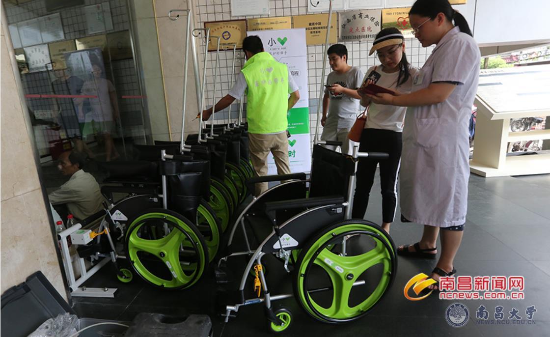 黑色的皮质座椅、绿色的轮毂、6台一组整齐地摆放在南昌大学第一附属医院门口……记者了解到,该院在门诊大厅门口、急诊门口、出入院服务中心等人流聚集区域均设了投放点,“共享轮椅每个桩上有6台,目前共引进了42台共享轮椅供患者及家属使用。”南大一附院门诊部主任李燕华介绍道,共享轮椅的出现,很好地解决了患者原先在医院借还轮椅需固定时间、地点借还的痛点,同时,共享轮椅使用起来十分快捷,使用者即扫即用,归还点多,且不限次数及归还时间。