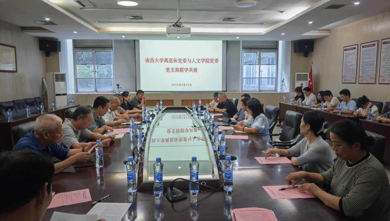 本网讯(人文学院 徐国林)9月25日,离退休党委红谷滩第三党支部与人文学院党委历史系本科生党支部在人文楼开展党支部联学共建活动。此次活动由离退休党委书记叶庆华主持,人文学院党委书记王淑军,党委副书记、纪委书记赵果及双方相关党支部成员共同参会。