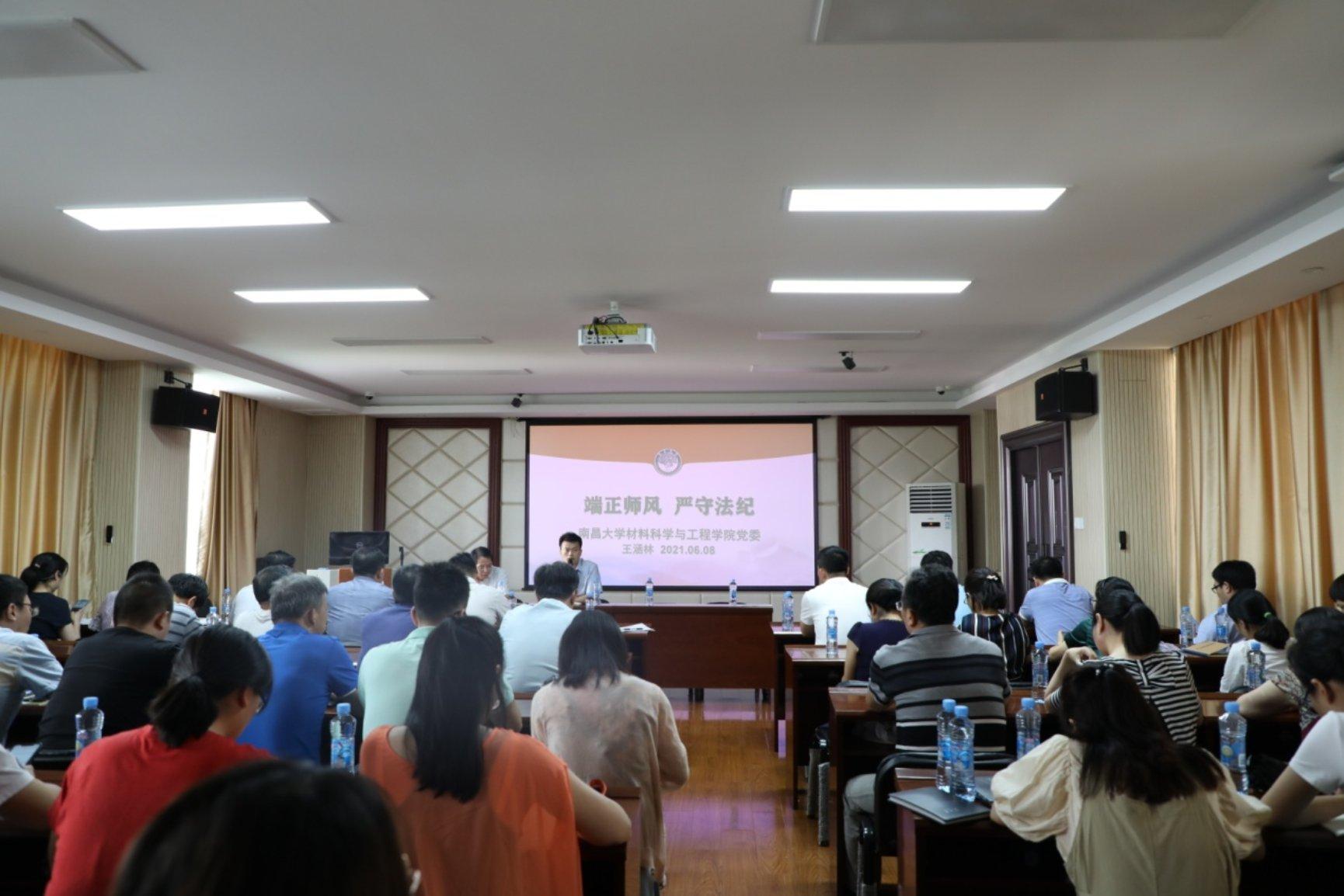 本网讯(材料科学与工程学院)6月18日下午,材料科学与工程学院组织开展党风廉政专题党课,院党委书记王涵林以《端正师风,严守法纪》为题作报告。党委委员,各教工党支部书记及全院教职工党员参加。