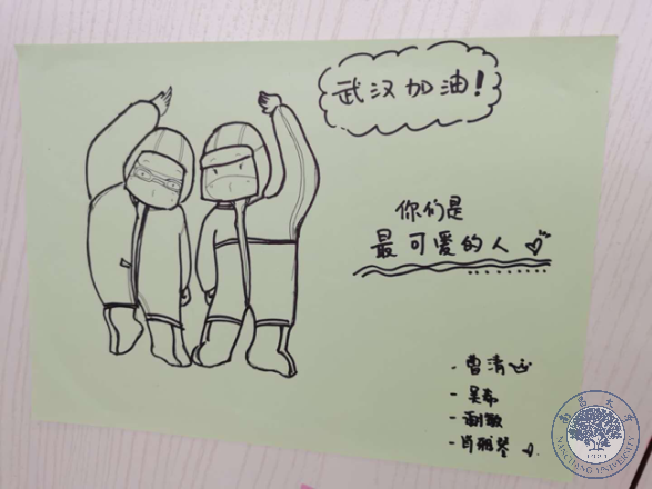 一张张洋溢着欢乐的脸,一位位折返的患者,一张张暖心的小纸条,它们不再是一张简单的纸片,不再是一张单纯的笑脸——它们是爱的传递,是我们在身心疲劳时的能量给予,它们是思念家人时的一份慰藉。在平凡的工作岗位上,我每天的工作是琐碎的,然而武汉人民带给我的感动却不平凡!“黄沙百战穿金甲,不破楼兰终不还”我们一定坚持到最后,不留一点隐患。让大家摘下口罩在清晰的空气里自由呼吸,孩子们能快快乐乐在阳光下笑着,跑着、玩耍着。