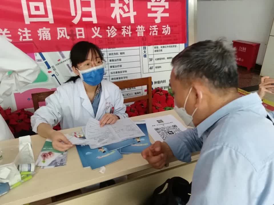 本网讯(第四附属医院)4月20日是第7个“全民关注痛风日”,当日上午,南大四附院在门诊大厅开展“走出误区 回归科学”主题义诊活动,为广大居民普及痛风相关知识,倡导健康的生活习惯,掌握正确科学的调养知识,知晓规范的治疗方法。