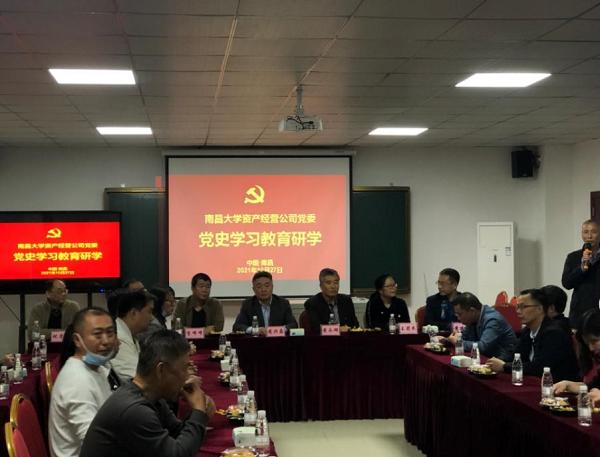 10月27日,资产经营公司党委组织公司在编职工、校属工厂党员及中层以上干部共计45人前往南昌客车厂原待岗职工、流动党员黄建国自主创办的江西南客校车运营服务有限公司开展党史学习教育研学活动。