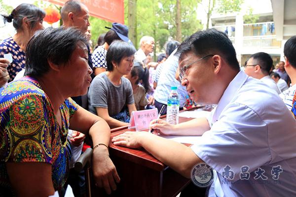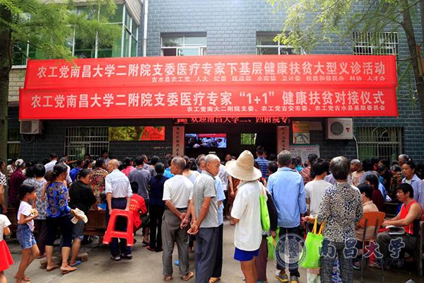 本网讯(第二附属医院)为深入贯彻落实“人民至高无上,患者是我亲友”活动精神,推动精准扶贫工作深入开展,解决贫困户就医难的问题,6月24日,农工党南昌大学第二附属医院支委医疗专家队一行10余人,来到吉安市吉水县,举行健康扶贫大型义诊活动。