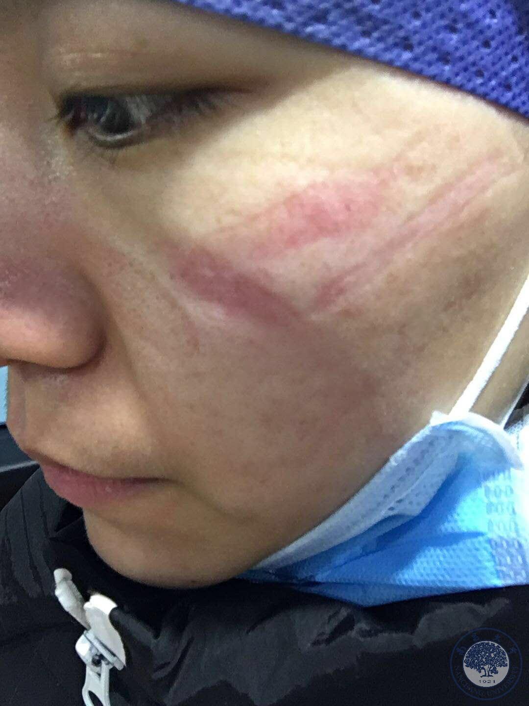 魏婷是修复党支部第一党小组的党员,一位96后的小姑娘。工作时,每四个小时换班,每天上班需要至少提前一个多小时到医院,进入工作区域,为了避免穿脱防护服,一直到下班,姑娘们都是尽量不喝水,不上厕所,脸上各处都留下了压痕。有一次魏婷在工作中觉得恶心,但是在舱内又不能摘下口罩,无奈之下只能吐到了口罩里。由于口罩系带绳必须勒紧,加上长时间的站立及走动,所以整个班下来魏婷感觉全身最难受的部位是头部和腰部,以至于回到住所后,魏婷都会感慨:“能用鼻子直接呼吸的时候真幸福。”