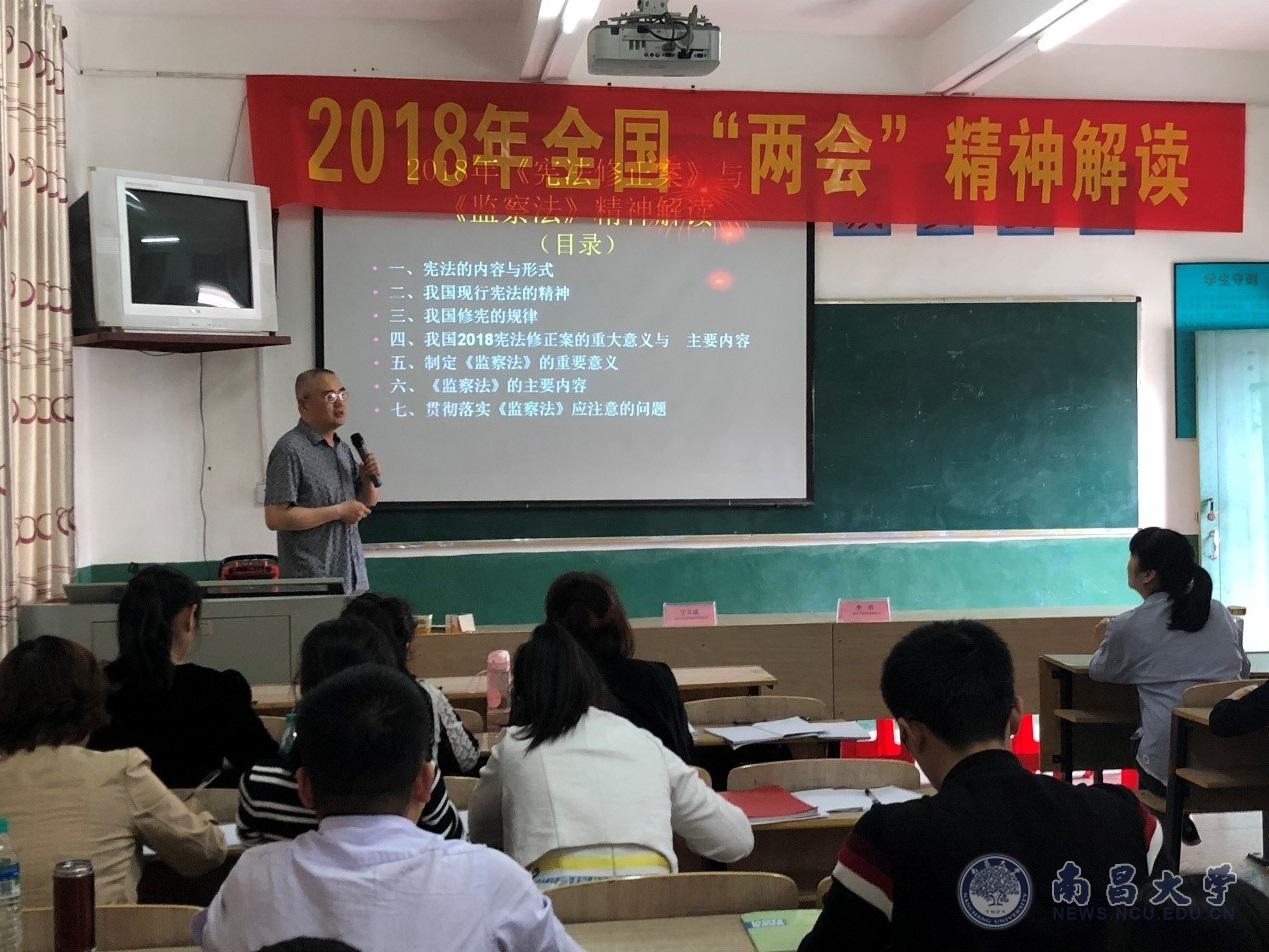 20日下午,教师党员宁立成教授在瑞金市瑞明小学教职员工中举办了“学习和贯彻‘两会’精神”报告会,报告会重点解读了新修宪法和监察法等方面的内容,宣扬了新时代以宪法为核心的法治理念和党中央全面依法治国、全面从严治党的决心。学生党员在瑞明小学开展“法治课堂”活动。此次学生法治宣传教育以“拒绝校园暴力”为主题,旨在提高小学生的自我保护意识、增强学生的自我保护能力。活动也体现了学生党员以己所学,回报社会的优良品质,充分发挥学生党员的先进性。
