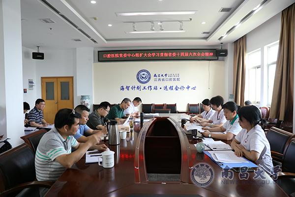 本网讯(附属口腔医院)8月2日下午,附属口腔医院召开党委中心组(扩大)会议,传达学习江西省委十四届六次全会精神。院党委书记廖岚主持会议并讲话,医院全体院领导、各职能科室负责人、各支部书记参加会议。