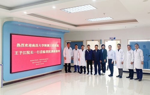 王予江一行先后来到赣州市南康区第一人民医院、赣县区人民医院进行实地走访,并围绕技术帮扶、科室管理、人才引育等方面展开深度交流。王予江介绍了我校口腔医院各学科的发展近况以及口腔医学院的学生培养情况,听取了受援单位用人需求及对口支援的意见建议,表示将进一步加强对口支援工作,拓宽医院与基层医院的“桥梁”,推动分级诊疗、优质医疗资源下沉及上下转诊等医改措施的落实,推进基层医院医疗质量与管理的进一步完善,不断满足当地百姓对高质量、高水平口腔医疗服务的需求。同时,继续保持良好的沟通交流机制,不断丰富对口支援工作内涵,为当地医院的人才培养和口腔医学院的学生就业提供有效指导服务。
