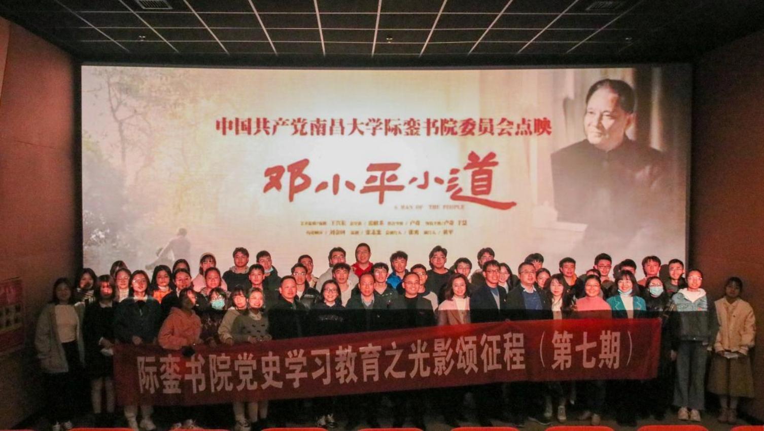 本网讯(际銮书院)12月9日,际銮书院组织开展党史学习教育之光影颂征程活动。书院师生党员集体观看了重大革命题材电影《邓小平小道》,电影编剧王兴东受邀一同观看。