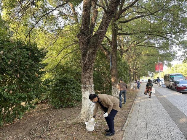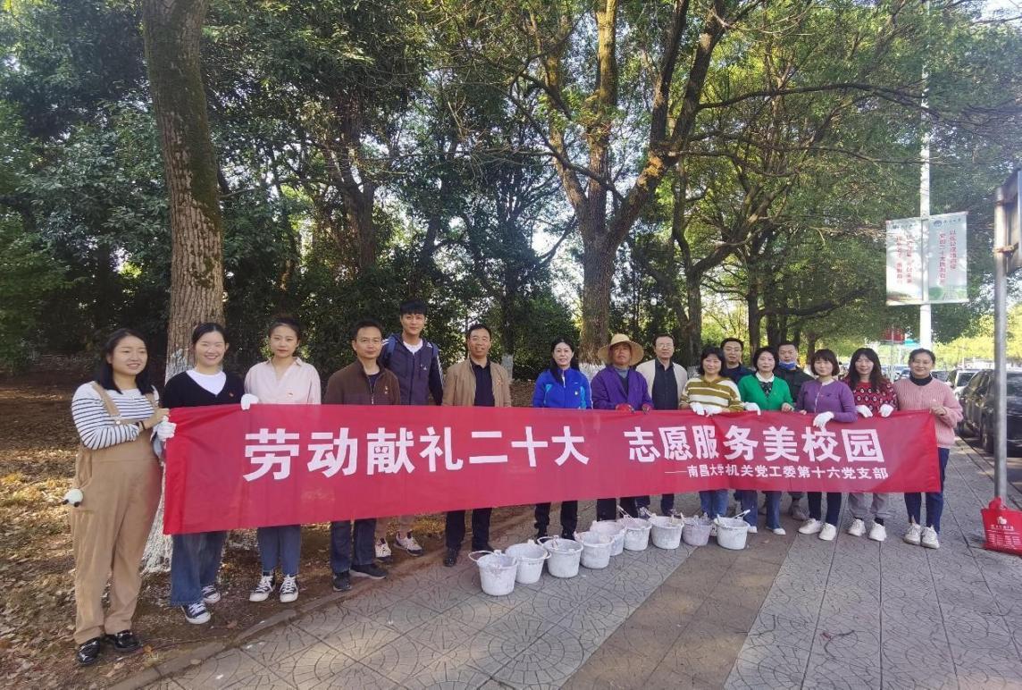本资讯(学生工作处)为进一步传承和弘扬劳动美德风尚,11月1日,南昌大学机关党工委第十六党支部开展以“劳动献礼二十大 志愿服务美校园”为主题的校园树木刷防虫涂料活动,让党员先锋模范作用发挥在志愿服务第一线,用实际行动向党的二十大献礼。