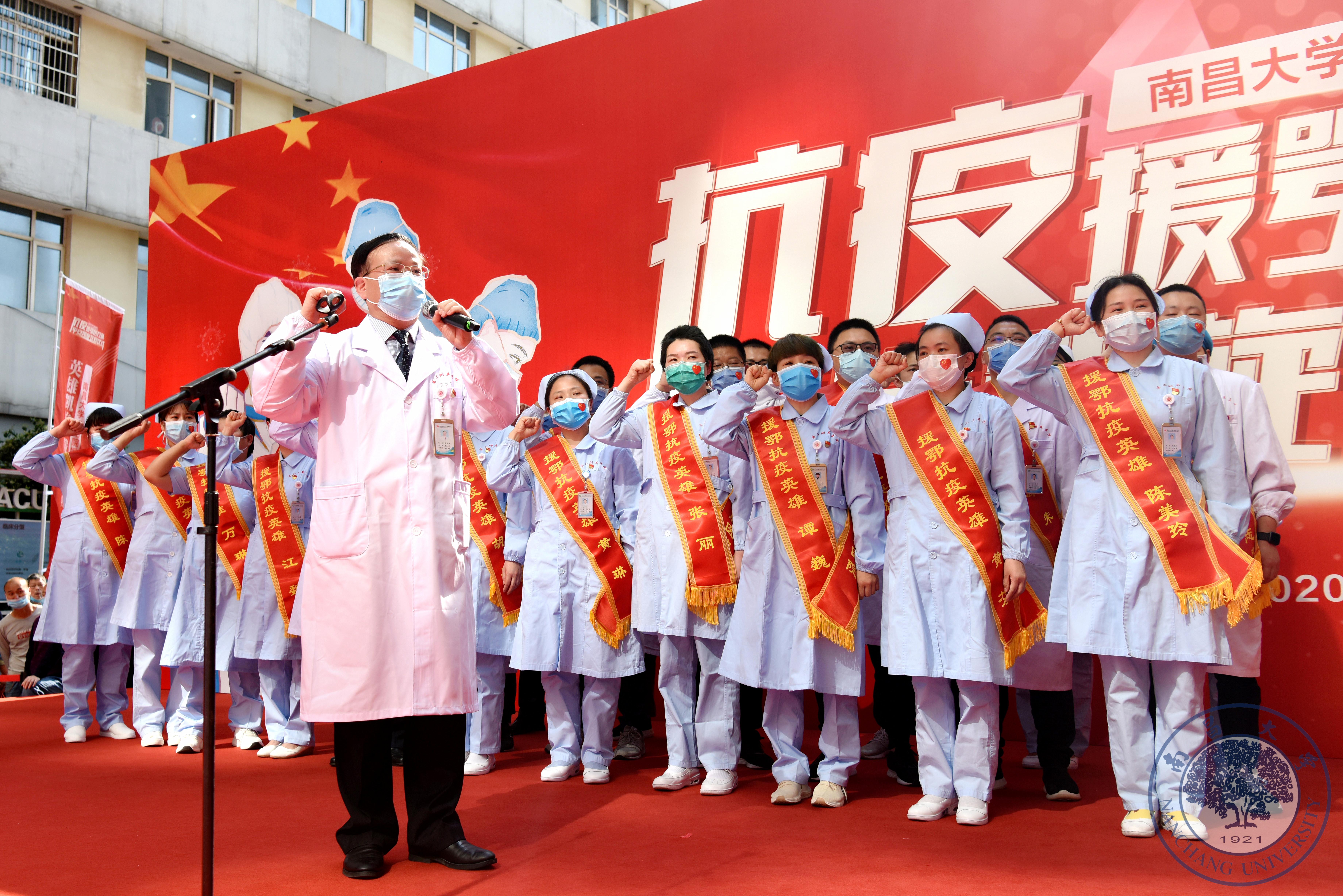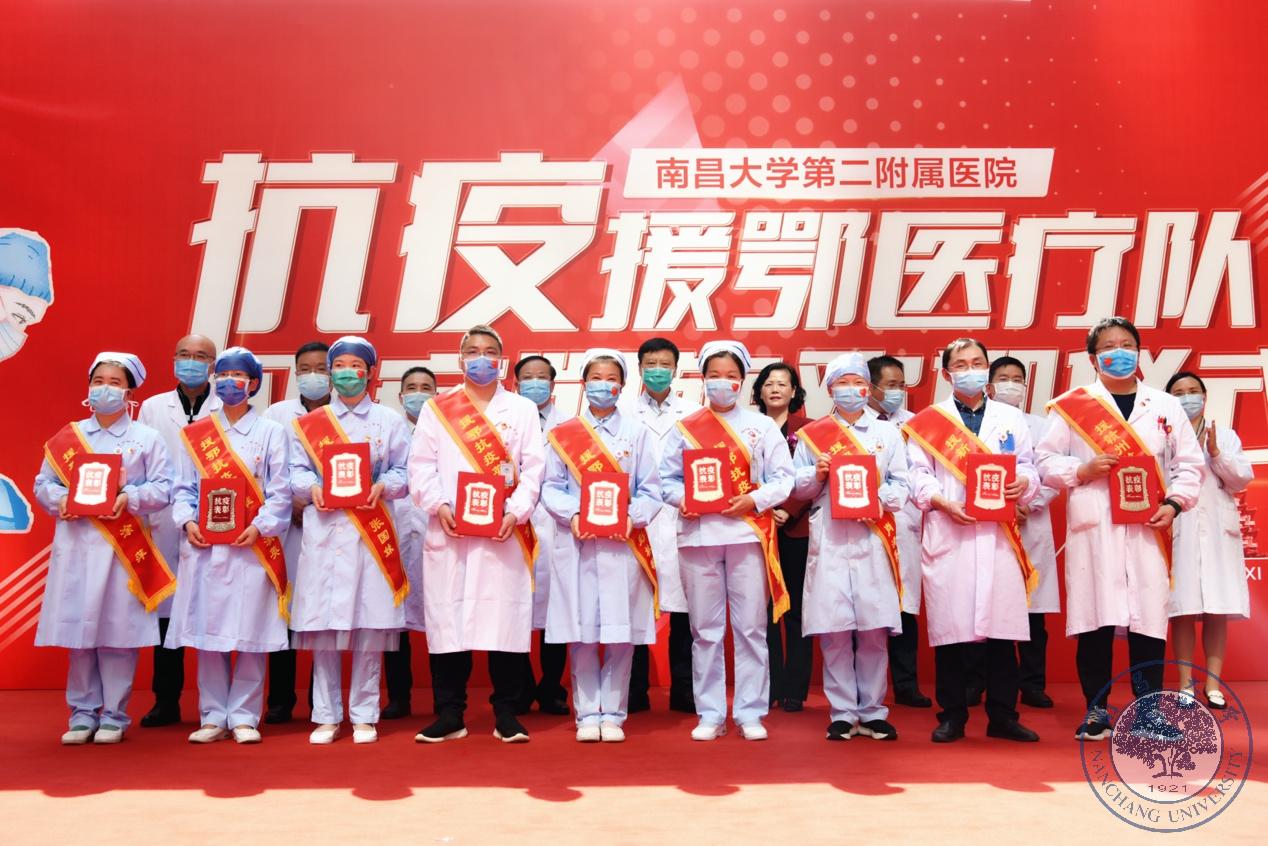 本网讯(通讯员吴竺静)白衣执甲护荆楚,山河无恙携春归。为深入贯彻落实习近平总书记关于关心爱护参与疫情防控工作的医务人员重要指示精神,大力宣传医院援鄂医疗队的感人事迹,讲好战“疫”英雄的感人故事,共同营造尊崇英雄、学习英雄的浓厚氛围,4月26日下午,南昌大学二附院在医院文化广场隆重举行抗疫援鄂医疗队平安凯旋欢迎仪式,表彰奔赴抗疫一线的医疗队队员们的战绩,庆祝他们凯旋!