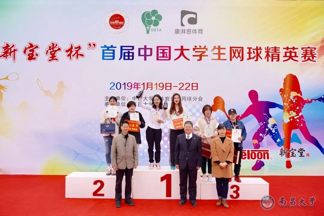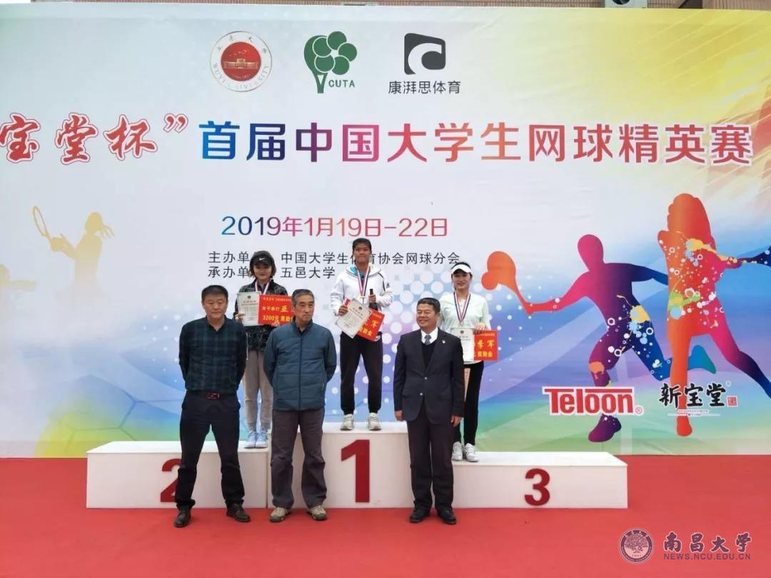 本网讯(体育与教育学院)1月19-21日,首届中国大学生网球精英赛在广东省江门市五邑大学举行。大赛由中国大学生体育协会网球分会主办,南昌大学网球队经过两天的奋力拼搏,取得了优秀成绩。体育与教育学院2017级硕士研究生侯闻迪与2015级本科生徐森烨并肩作战获得女子双打冠军,2015级本科生付笑笑收获女子单打季军。
