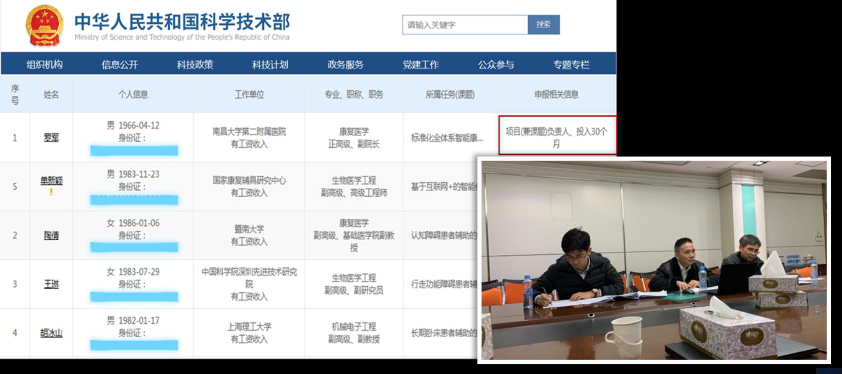 “典型功能障碍患者智能康复辅具研发及应用示范”项目组核心科学家名单