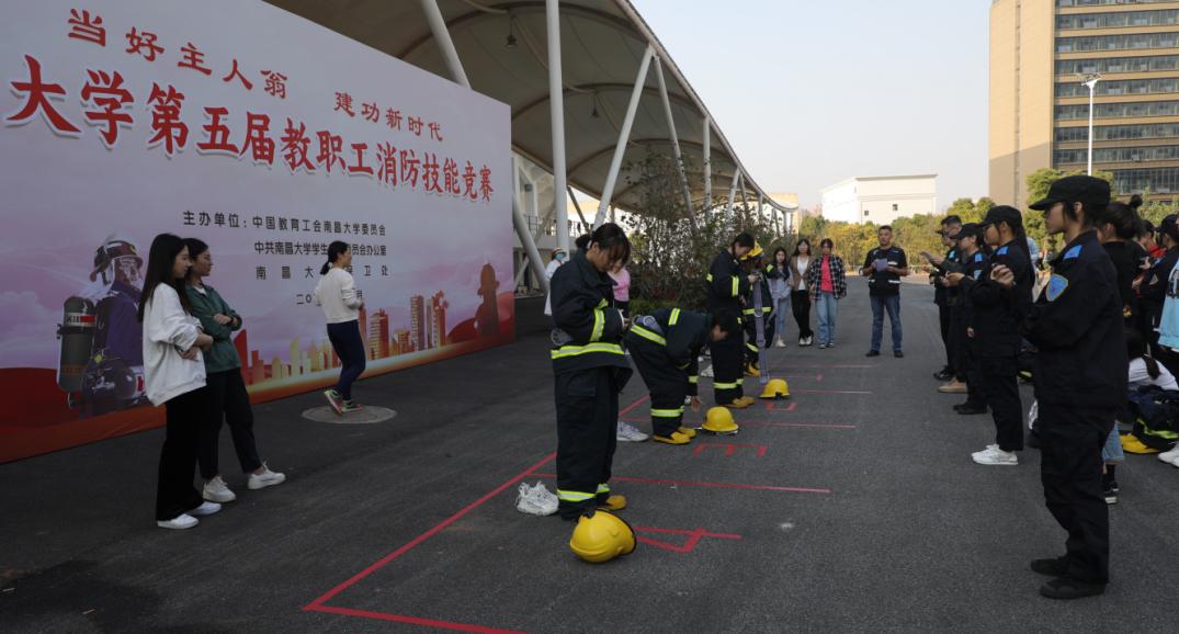 11月9日,校工会、学生工作委员会、保卫处在前湖校区联合举办了第五届教职工消防技能竞赛,教职工在“消防水带展开与连接”、“油盆灭火”以及“消防服原地着装”等三个环节展开激烈角逐。