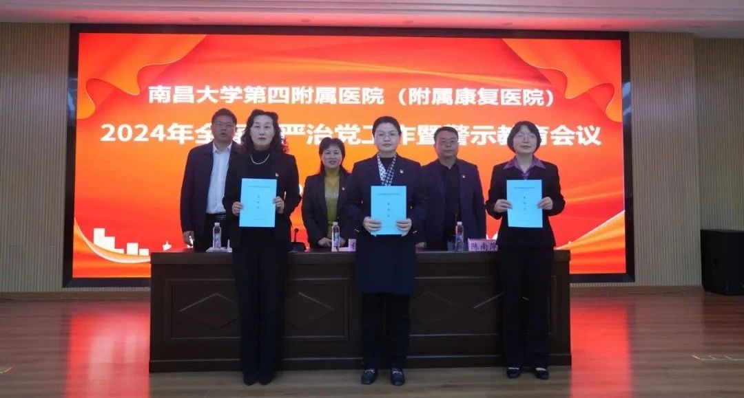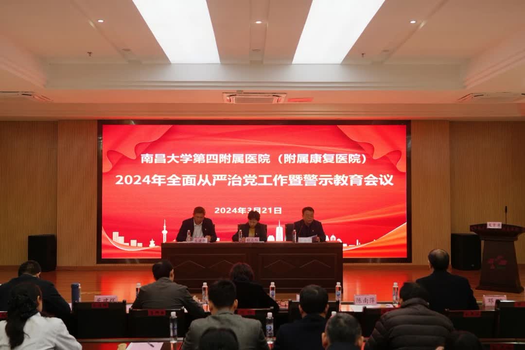 本网讯(第四附属医院)3月21日上午,第四附属医院召开2024年全面从严治党暨警示教育会议,深入贯彻落实党的二十大、二十届中央纪委三次全会、省纪委十五届四次全会精神,全省卫生健康系统和南昌大学全面从严治党工作会议有关部署要求,回顾总结2023年医院全面从严治党工作情况,分析研判面临的形势,部署安排2024年重点工作任务。党委书记程志红出席会议并讲话,纪委书记乐建辉作党风廉政建设和反腐败工作报告。党委副书记陈南萍主持会议。