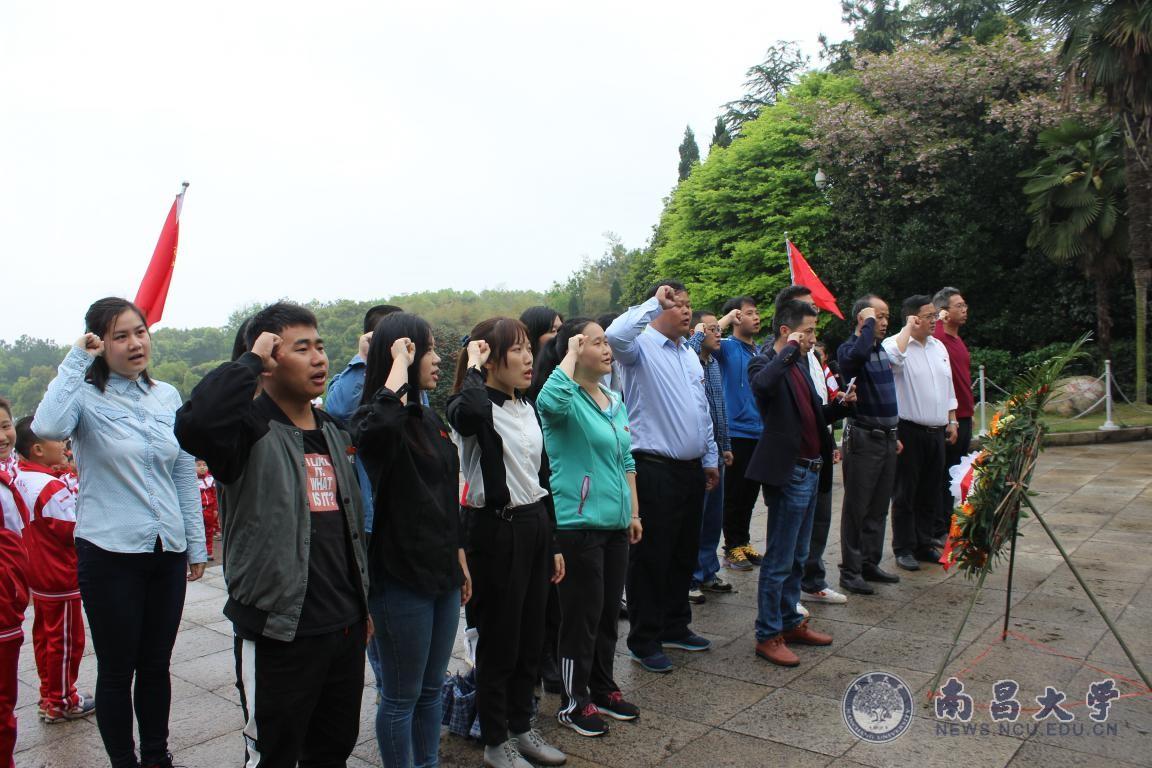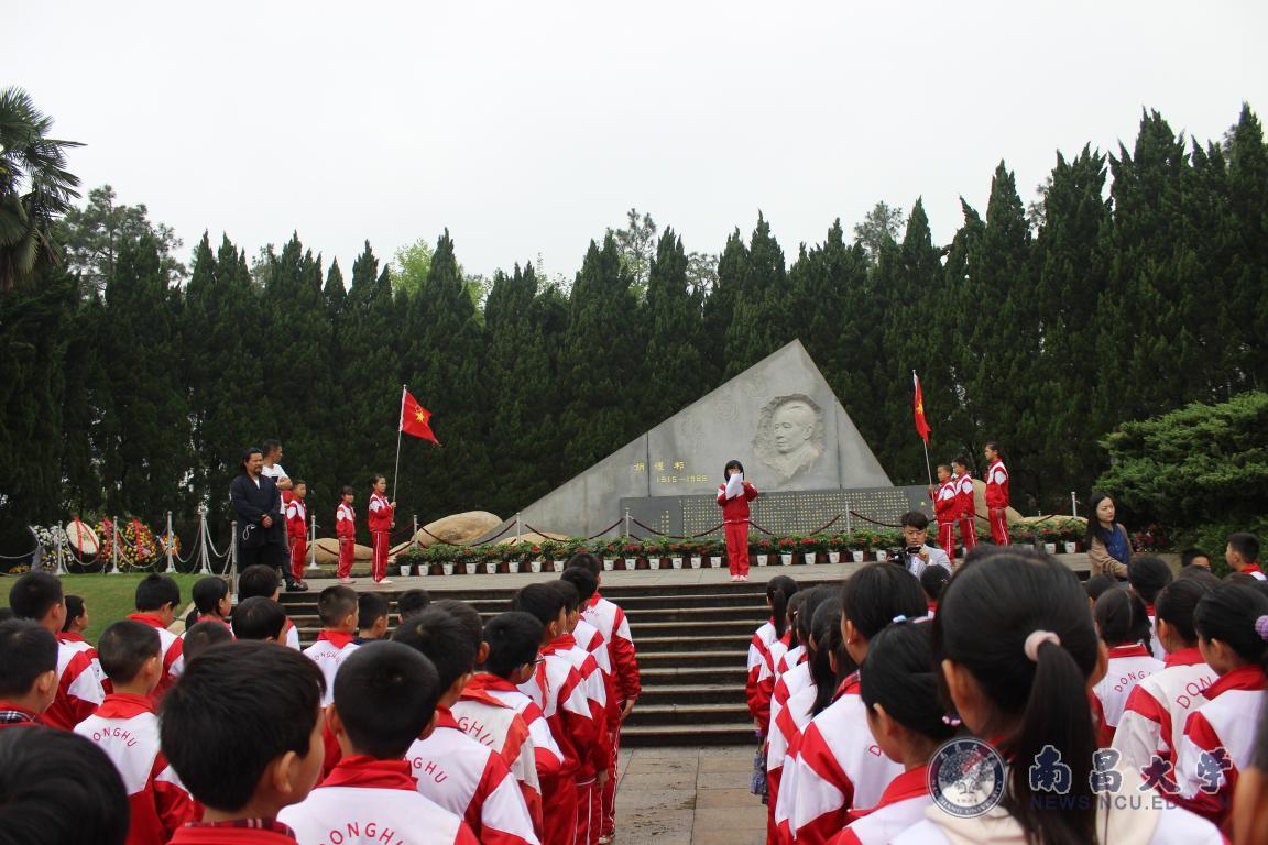 本网讯(团委)在清明节来临之际,为大力培育和践行社会主义核心价值观,深化实施“红色基因代代传”工程,引导广大少先队员铭记历史,缅怀革命先烈,传承红色基因,奋发图强,振兴中华。4月3日上午,服务于共青城市东湖小学的南昌大学研究生支教团联合东湖小学团支部,组织学校少先队徒步前往耀邦陵园进行瞻仰缅怀。来到耀邦同志墓前,同学们端庄严肃,满怀哀思,向他敬献花篮,并默哀3分钟,表达对**总书记的深深缅怀和敬爱之情。少先队代表发言并宣誓,表示“学习他求真务实、坚韧不拔的革命精神,传承红色基因,努力做优秀的社会主义接班人”。研支团党员志愿者与学校党员教师一起庄严宣誓,重温入党誓词。