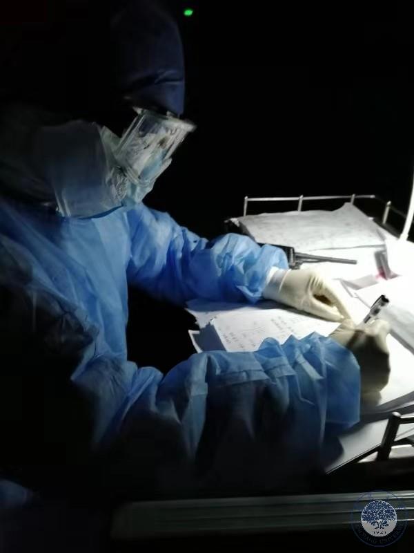 经过半个多小时的整理,我们终于穿上隔离衣“整装待发”进了隔离病区。此时的医院一片漆黑,唯有护士工作台上几盏微弱的光还亮着,反而更衬托了此刻的安宁。我们详细的交完班,病人大都在睡着。有几个有点烧,伙伴们轻轻走到床前,不时为患者测量体温关注病情的同时又怕惊扰了患者休息。