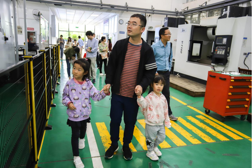 活动分别参观了工程训练中心自动化生产线、观看“3D打印机”工作流程、亲子制作积木玩具等。