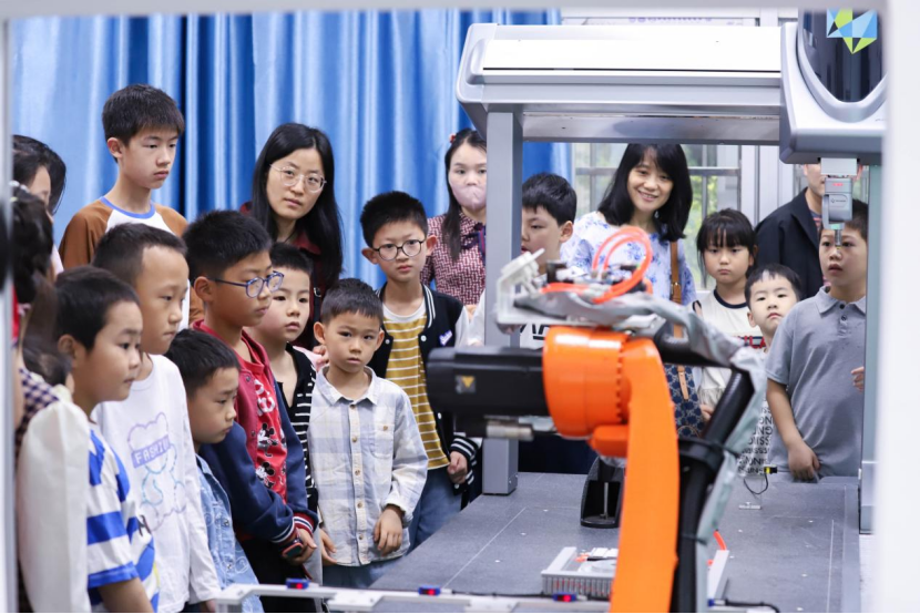 “爸爸,爸爸,这个机械臂好厉害,它能自己拿东西!”“老师,我问个问题,机器人车是有人在操作吗?它怎么知道避开我呢?”“小宝贝,快看,这个积木它竟然能动!”在工程训练中心,小朋友们观看了自动化生产线,初步了解自动化机械臂、运输车的运行原理,感受数控车床通过铣、车等一系列流程制作出教学模型。活动现场,来自机械创新创业基地的学生,向小朋友们展示了“3D打印”技术,经过软件绘图,链接3D打印机,可爱的“玩具”就诞生了,小朋友们在机械创新创业基地学生的指导下,自己通过搭积木的方式,搭建了小汽车、直升机等玩具。