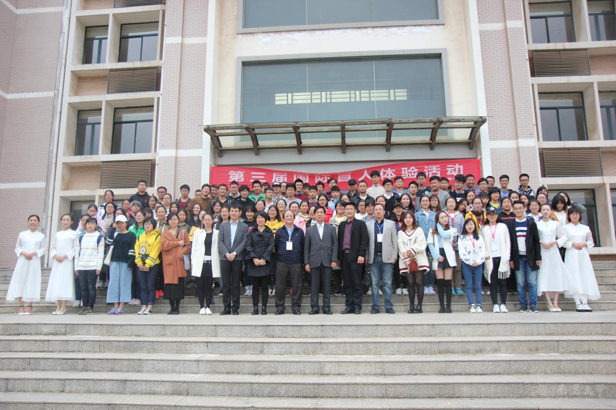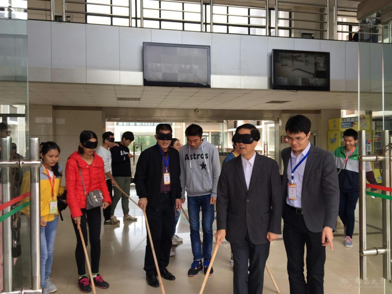 本网讯(学生记者王晓)10月15日,第三十四个国际盲人节。为呼吁我校师生关爱盲人、珍惜光明,眼视光学院在前湖校区南院举办国际盲人节盲人体验活动。校学工处处长王晓辉,眼视光学院院长易敬林、党委书记王仕旺等师生代表150余人参加了本次活动。