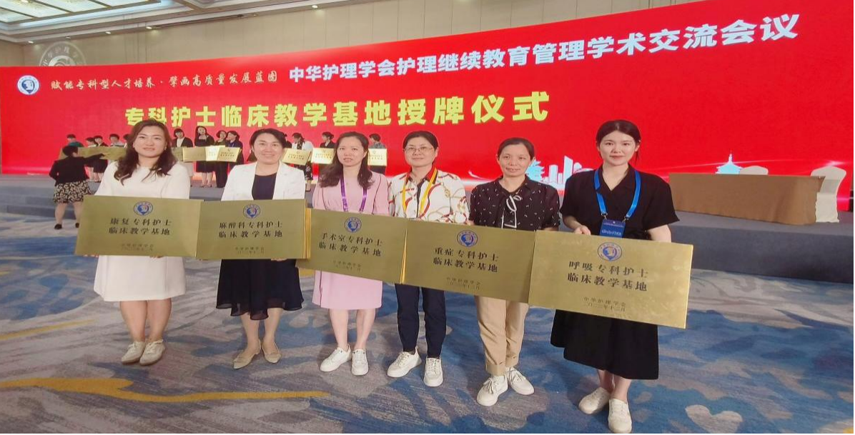 本网讯(第一附属医院)6月13日至15日,中华护理学会护理继续教育管理学术交流会暨中华护理学会专科护士临床教学基地授牌典礼在浙江省杭州市召开。会上,第一附属医院手术室护理、麻醉护理、康复护理、呼吸护理、重症护理5个临床教学基地获得授牌,相关负责人参加授牌仪式。