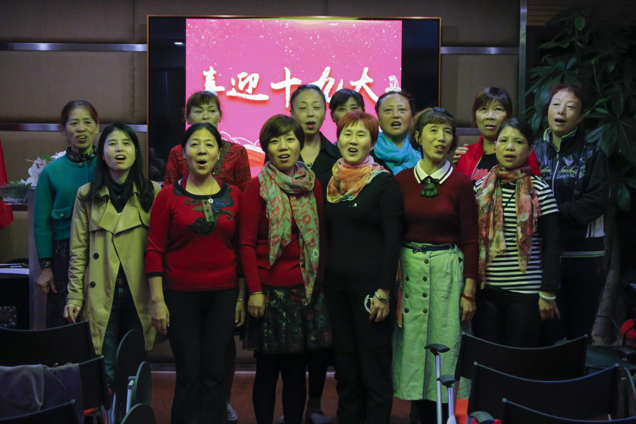 在街道工作人员和校青志协的组织下,13位社区老人自愿组成的夕阳合唱团用一曲《映山红》祝福祖国。谈到唱红歌的意义,合唱团领队殷淑芬老人表示,作为和共和国一起成长起来的一代人,唱红歌能抒发她们对祖国的感情,也丰富了退休后的业余生活。