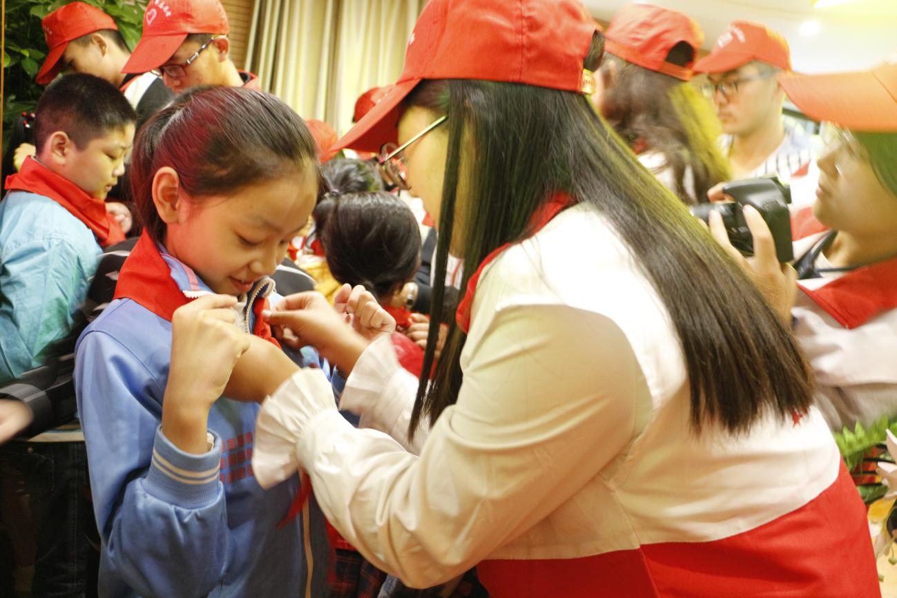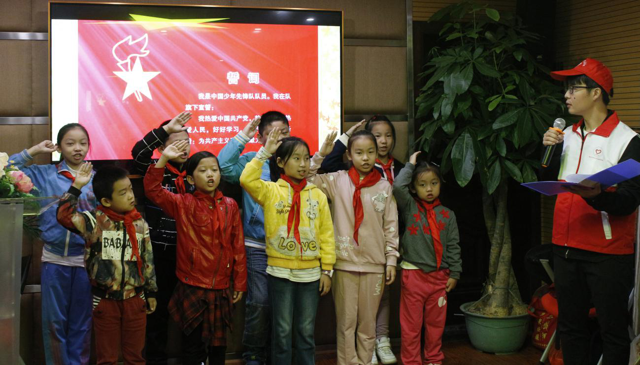 伴随着嘹亮的《我是共产主义接班人》,社区党员、学校党员和志愿者们为少先队员系上鲜艳的红领巾。“我热爱中国共产党,热爱祖国,热爱人民,好好学习,好好锻炼,准备着:为共产主义事业贡献力量”,7名少先队员举起右手诚挚宣誓。
