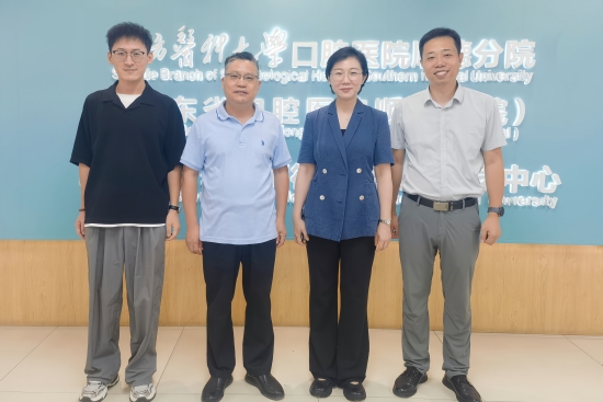 座谈会上,南方医科大学顺德医院副院长胡秋根对周婷一行表示欢迎,对南大口腔校友为顺德口腔医学事业发展作出的重要贡献表示高度认可。他表示,自南方医科大学口腔医院与顺德医院合作共建以来,陈国栋积极参与学科建设,推动国家临床重点专科资源下沉,助力顺德医院口腔科升级为现代化多亚专科诊疗中心,为区域口腔医疗水平提升奠定了基础。