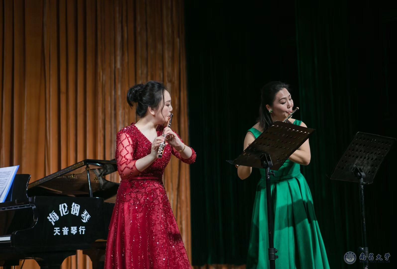 本网讯(艺术与设计学院)5月25日晚,“前湖之韵”南昌大学&武汉音乐学院长笛交流音乐会在校音乐厅举行。长笛演奏家 、教授,现武汉音乐学院管弦系主任徐戈,中国长笛联合会理事、现南昌大学艺术与设计学院长笛教师魏天妙及南昌大学艺术与设计学院长笛专业学生携手奏响音乐会。