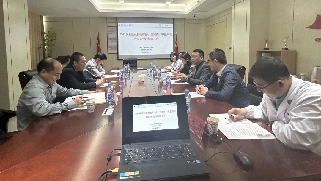 本网讯(通讯员 濮琦琳)3月28日,莲花县卫生健康委、县委组织部人才办、县中医院一行专程来访我校四附院,就医院长期支持帮扶莲花县提升医疗技术与服务能力表达诚挚感谢。医院党委副书记陈南萍、副院长白洋及相关部门负责人参加座谈会,并与来访团开展了深入的座谈。
