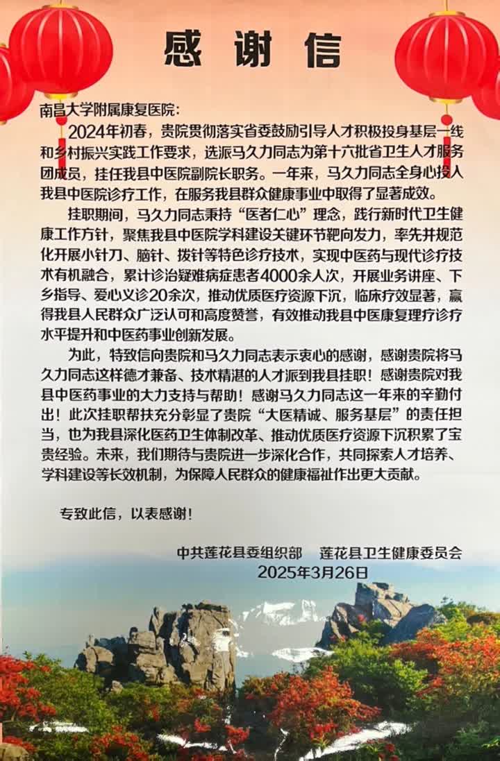 陈南萍在交流中,详细介绍了医院康复学科的技术特色。他表示,莲花县各级部门领导专程送来锦旗与感谢信,这不仅是对医院服务基层医疗卫生事业的认可,更是激励我们继续前行的动力。此次交流,为双方未来进一步深化合作,奠定了良好的基础。