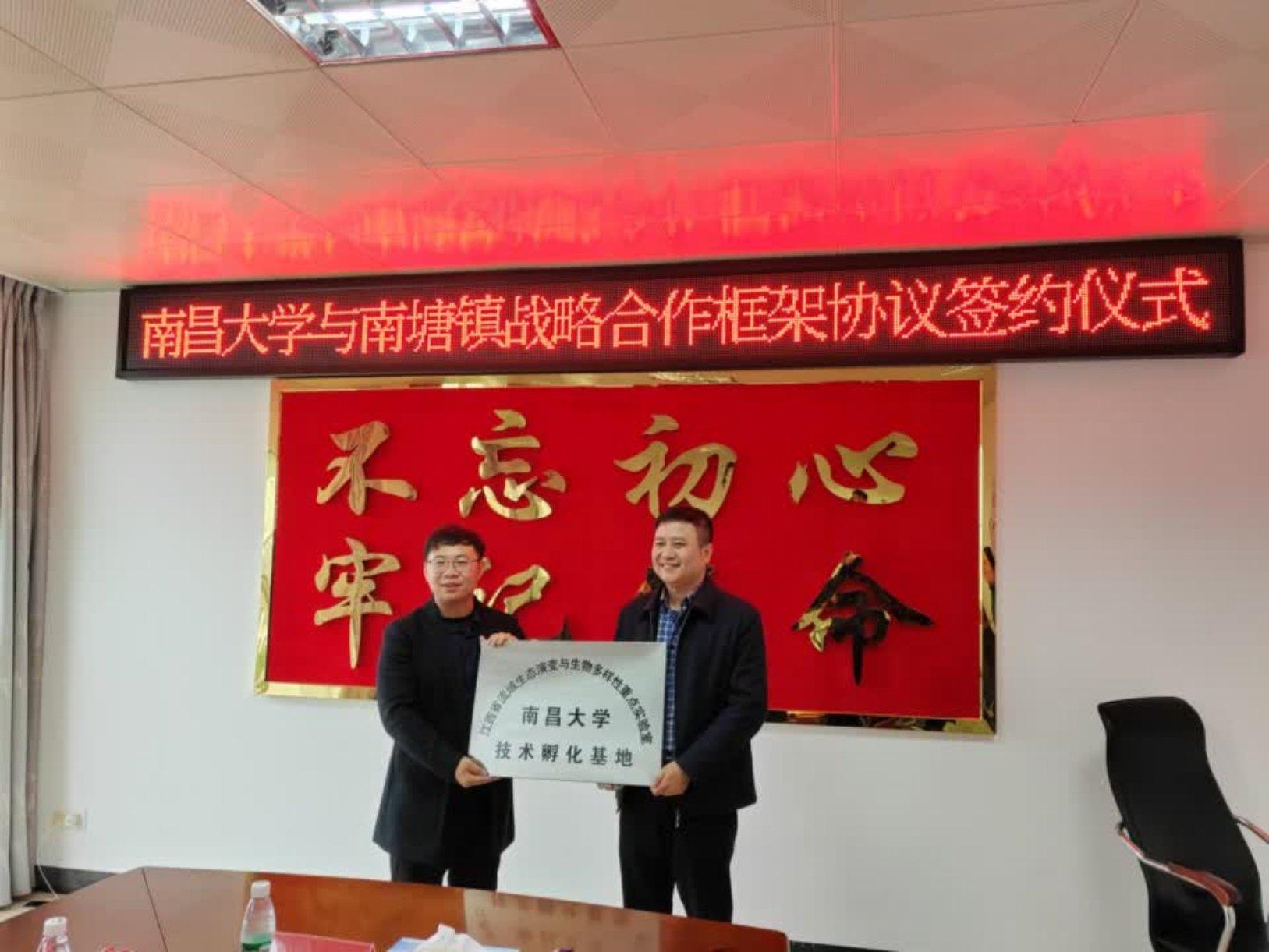 图5:赣州市南塘镇领导向南昌大学油茶技术孵化基地授牌
