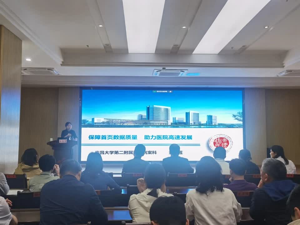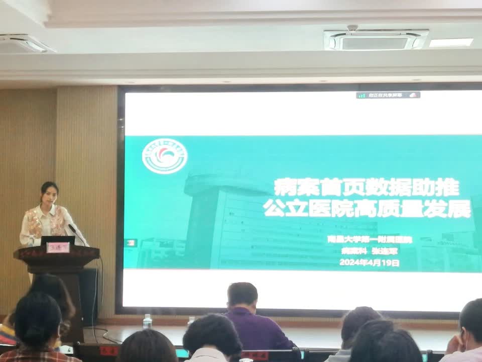 本网讯(第四附属医院)4月19日—22日,第四附属医院面向全院医师,连续开展两场病案首页填写质量专项培训,进一步提高医师病案首页填写质量,加强病历内涵建设,保障医疗安全。南昌大学第一附属医院病案科主任张连军、第二附属医院病案科主任金春莲授课。全院临床医师参加了培训。会议由副院长刘泽林、党委委员方正旭主持。