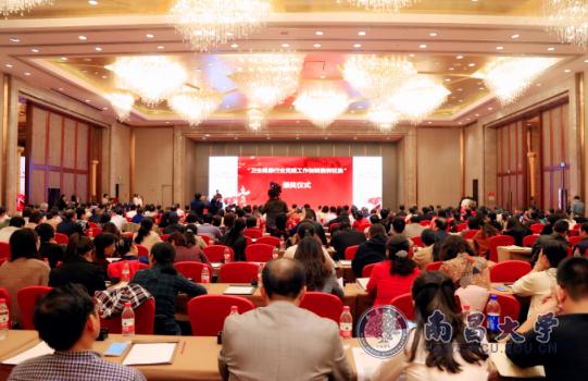 本网讯(第二附属医院)为深入学习宣传贯彻党的十九大精神,从党和国家事业发展全局出发,对标新时代党建工作的总要求,推动医院党建工作和全面从严治党向纵深发展步伐。11月1日,由《健康报》社、《中国卫生》杂志社主办,第二附属医院承办的全国“卫生系统党建工作经验交流座谈会”在南昌召开。江西省卫生计生委党组成员、副主任曾传美,校党委书记喻晓社,第二附属医院党委书记程学新,《健康报》社党委副书记、纪委书记刘世东分别致辞,校组织部部长徐光兵、第一附属医院党委书记舒明出席开幕式。开幕式由《健康报》社行业发展事业部主任孟庆普主持,来自全国15个省份130多家医院近400余位医院党委书记、党务工作者、专家学者参会。