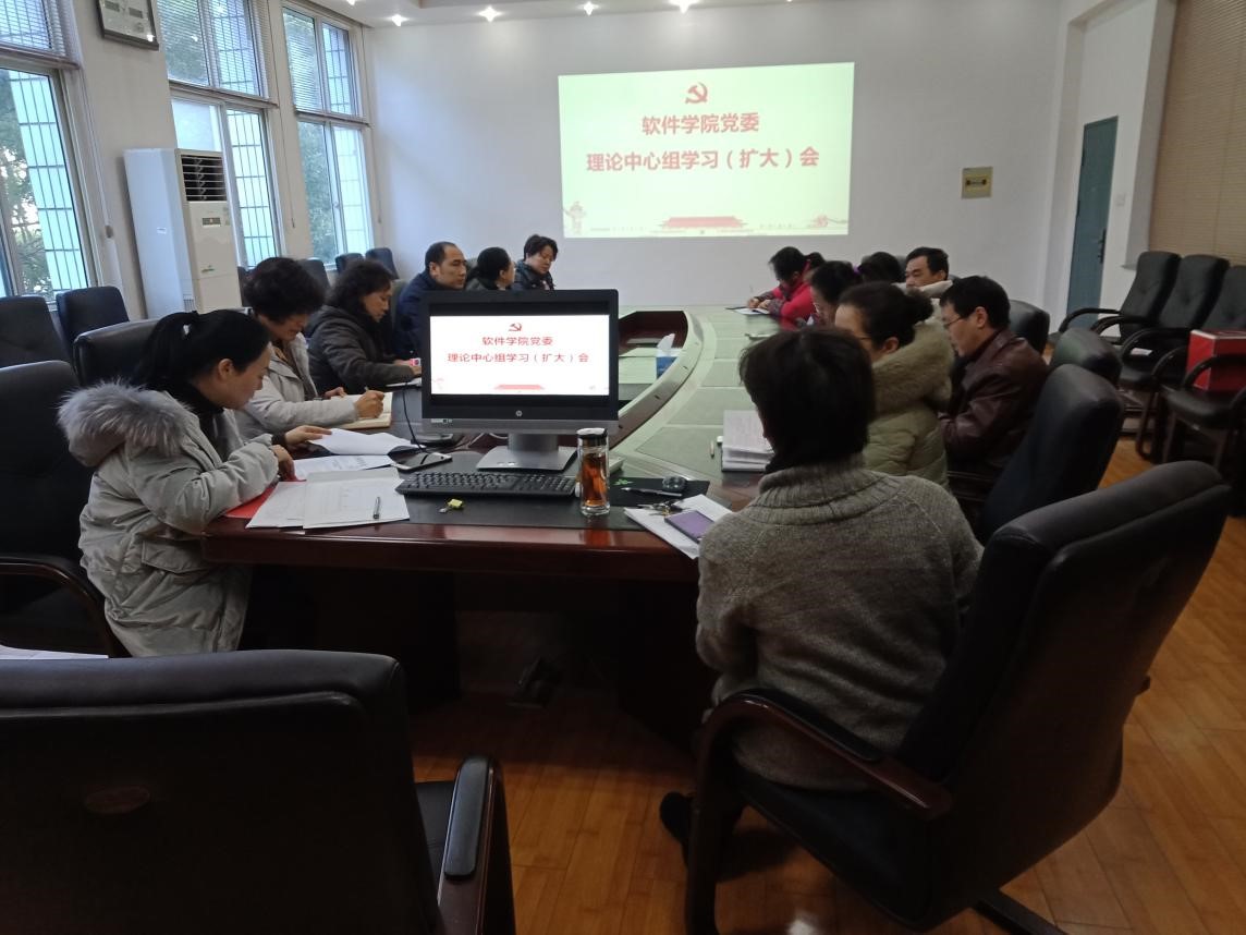 本网讯(软件学院)1月9日上午,软件学院召开党委理论学习中心组学习(扩大)会,学院科级以上干部以及党支部书记参加。