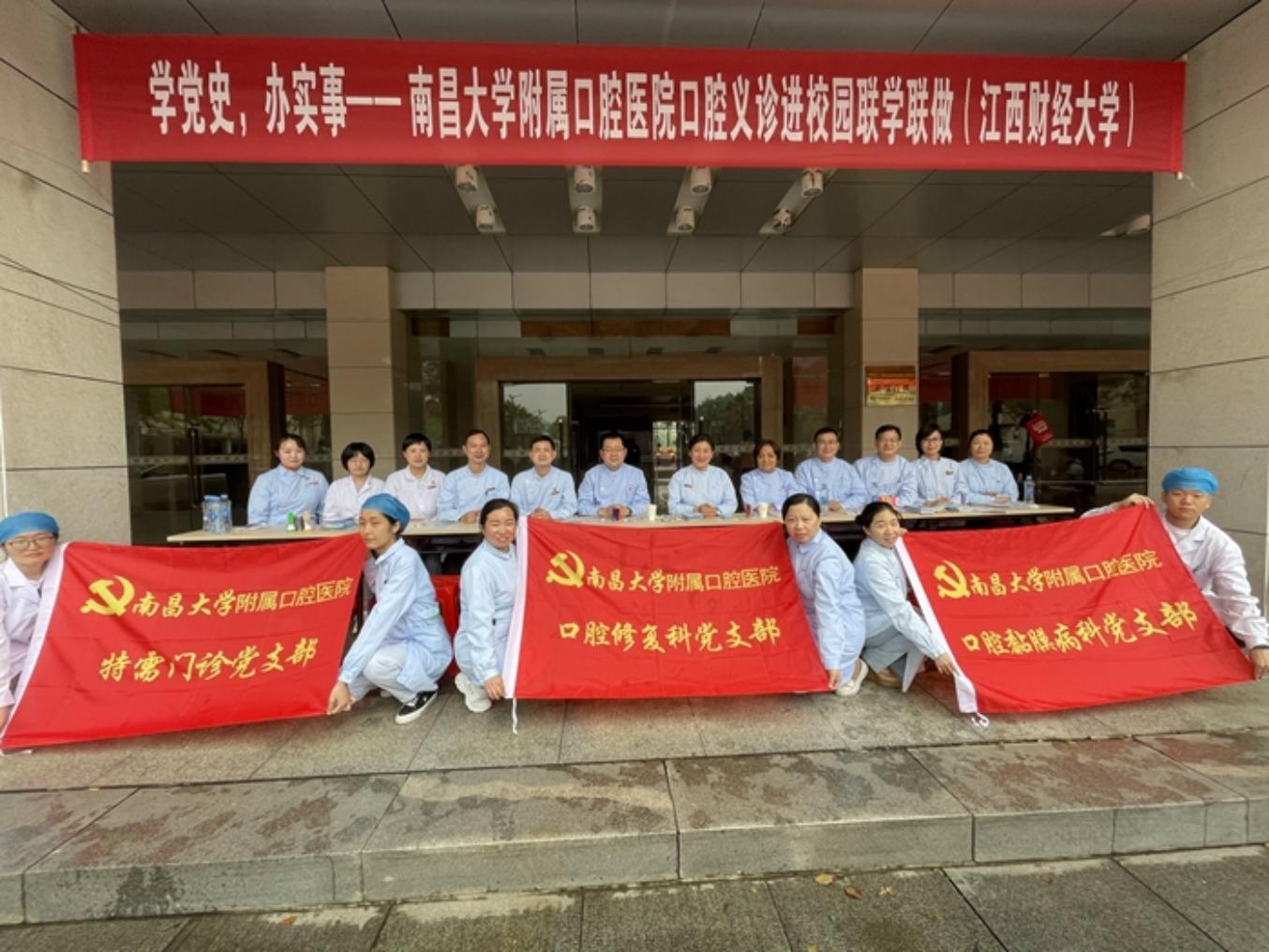 本网讯(附属口腔医院)为扎实开展党史学习教育,5月18日下午,南大口腔医院修复科党支部联合特需门诊党支部、口腔黏膜病科党支部全体党员,在党委书记廖岚、院长杨健的带领下,走进江西财经大学,为广大师生们开展“学党史,办实事”义诊活动。江西财经大学各部门近200名教职工参与了活动。