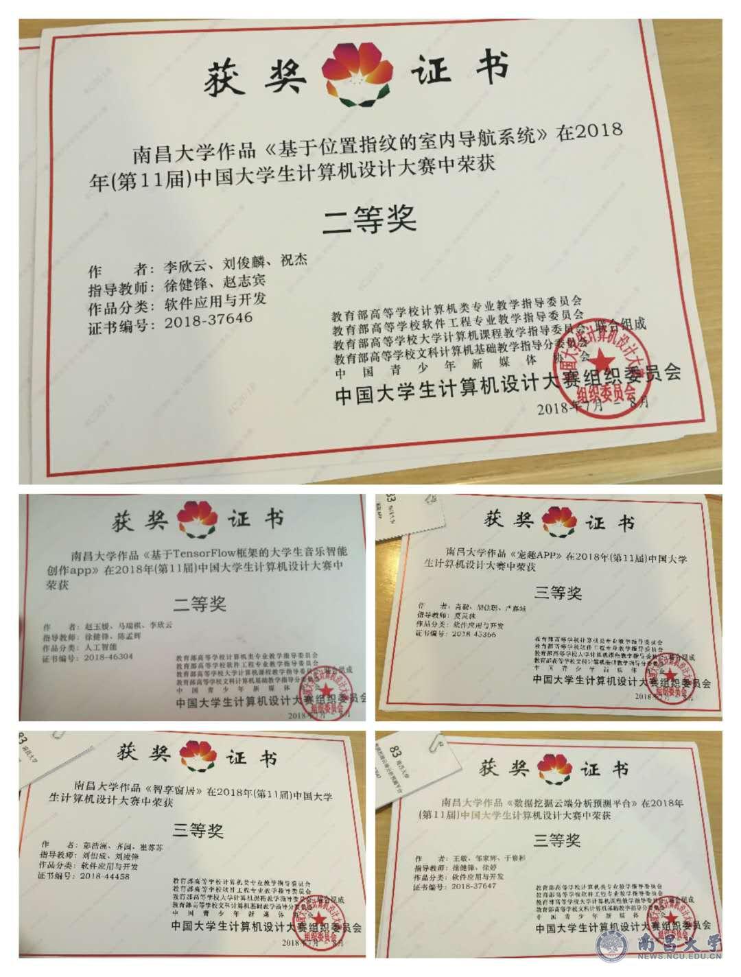 本网讯(软件学院)近日,在2018年(第11届)中国大学生计算机设计大赛全国总决赛中,经过初审、复议、决赛答辩演示等多个环节比拼,软件学院选送的参赛作品荣获国家级二等奖2项、三等奖3项。