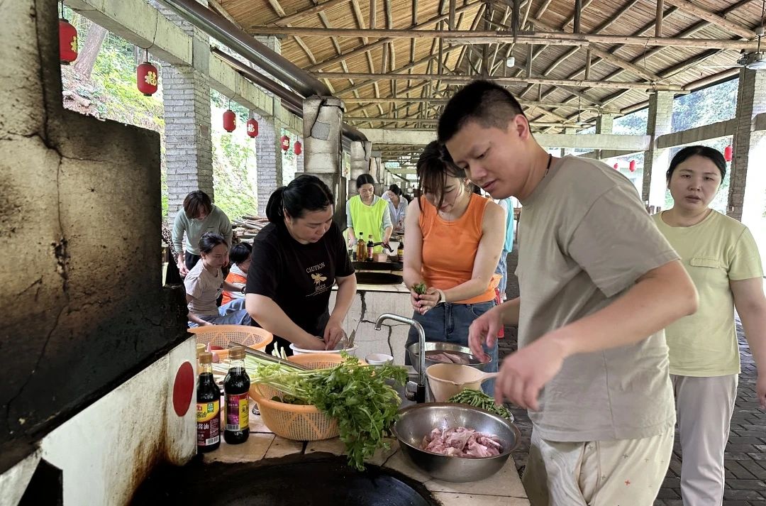 菜、肉、锅碗瓢盆一应俱全。在红色柴火饭环节,大家各显身手,按小组分工合作,烧柴、淘米、洗菜、掌勺……忙得不亦乐乎,灶台间,欢声笑语一片。