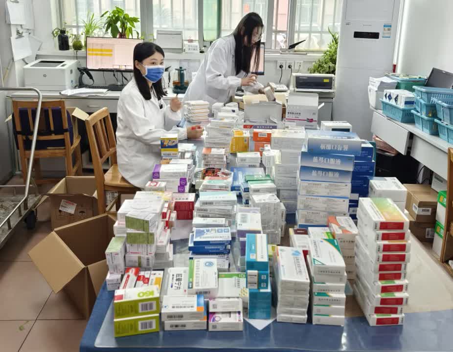 药学部第一时间部署筹备防汛药品,药库工作人员根据专业医疗知识并结合实践经验,针对汛灾特点整理应急药品清单;各药房人员加班加点准备药品,确保在汛期来临时能够直接投入使用。