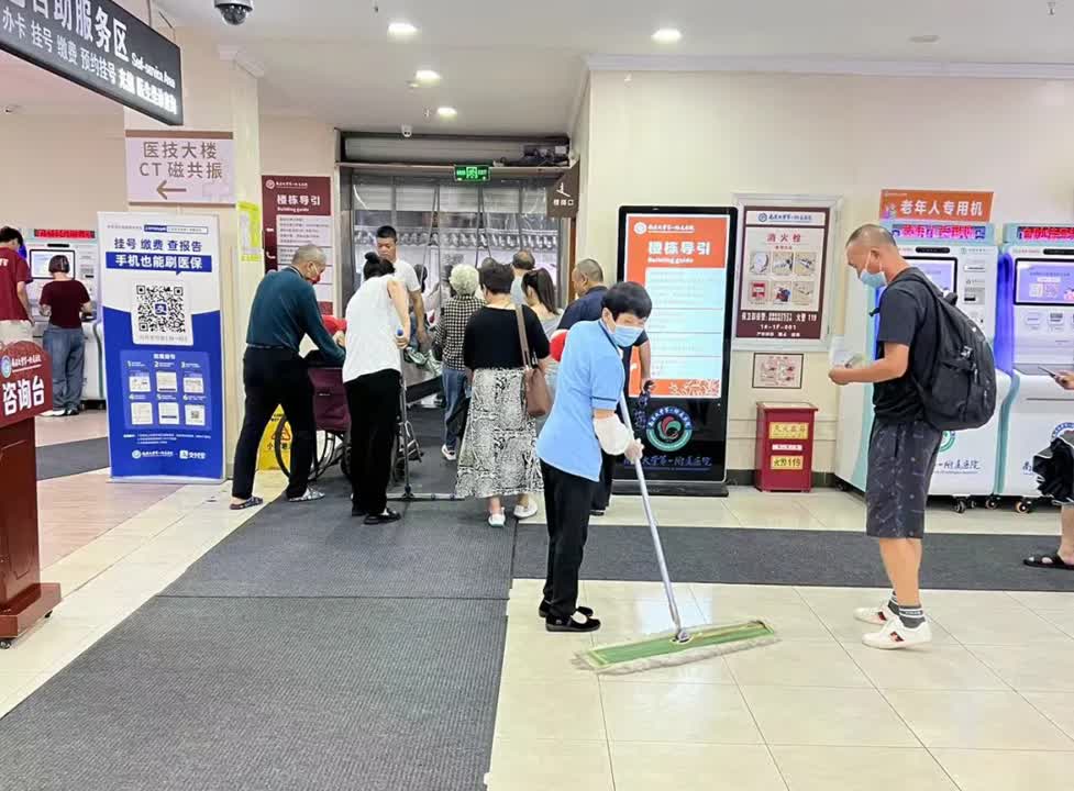 为应对好周一门诊的就诊高峰,门诊部充分做好防汛应急准备工作,在大厅入口处为所有来院就诊的患者都准备好雨伞伞套,避免大厅因雨水过多造成湿滑,同时在大厅铺设防滑垫,并加强地面的清扫,避免发生跌倒等不良事件。