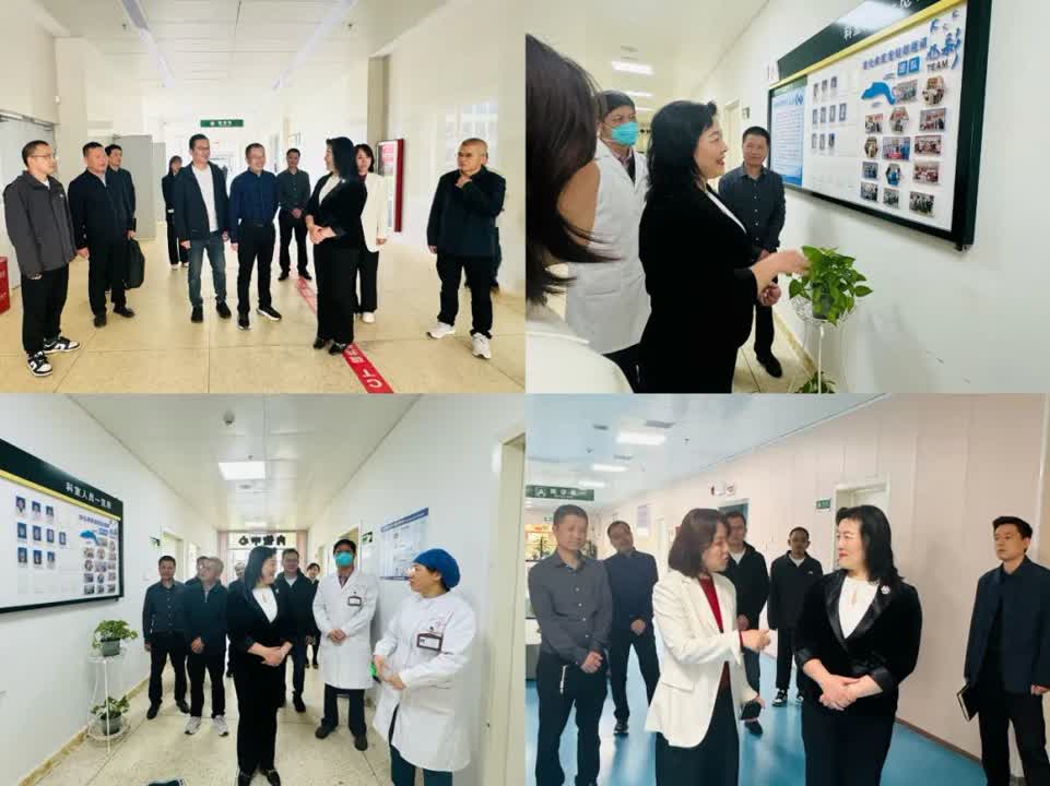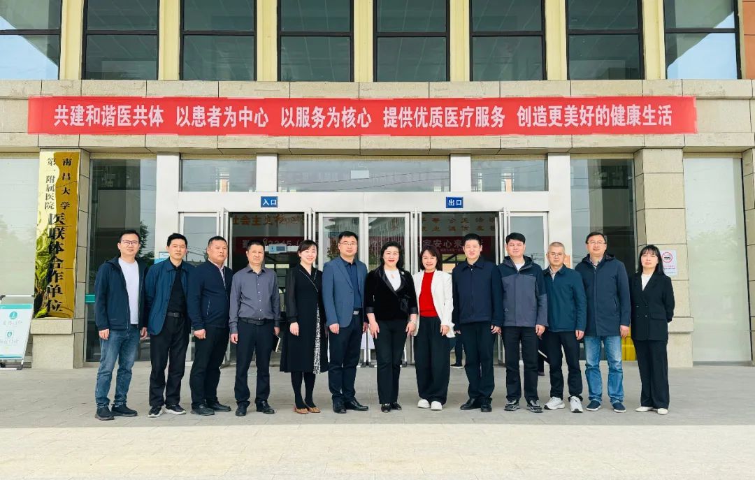 本网讯(第一附属医院)4月13日,第一附属医院党委书记廖岚赴井冈山市人民医院开展实地调研,重点督导医联体工作推进情况,并针对帮扶过程中存在的痛点和难点问题进行现场调研,深入推进“红心向党 医路向廉”医联体建设,切实提升井冈山市医疗卫生服务能力。