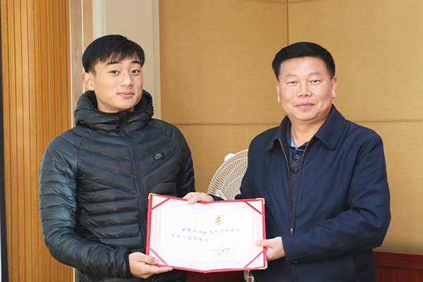 回到母校,江敏文直接来到足球场与附属小学校队球员互动,并认真细致地指导队员训练,不时地纠正动作,做具体的示范。指导结束,江敏文还看望了自己的班主任和教练。在附属小学会议室,附属小学校长余卫为江敏文颁发了“校足球队名誉教练”聘书,相关负责人介绍了附属小学足球工作开展情况。