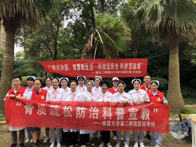 本网讯(二附院 刘素云、谭旋)为增强居民健康意识,提高居民生活质量,2019年7月20日,南昌大学第二附属医院骨科医护人员及红十字护理志愿者们在刘肇清主任及刘素云护士长带领下,来到红谷滩盛世经典社区开展以“骨质疏松防治宣教”为主题的义诊活动。