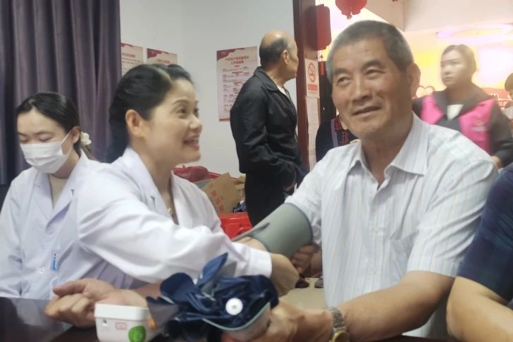 志愿者来到徐大爷家中,免费提供健康状况评估、血糖和血压检查,教授呼吸操锻炼方法,督导老人做好合理锻炼、遵医嘱用药。