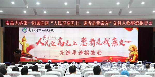 本网讯(第一附属医院) 为落实“人民至高无上,患者是我亲友”专项服务能力提升活动,5月24日,第一附属医院邀请十九大代表、江西省皮肤病专科医院麻防科科长、康复中心主任徐根保同志作先进事迹报告。全院班组以上干部、支部委员、党小组组长、机关后勤工作人员等近400人参加活动,党委书记舒明主持报告会。
