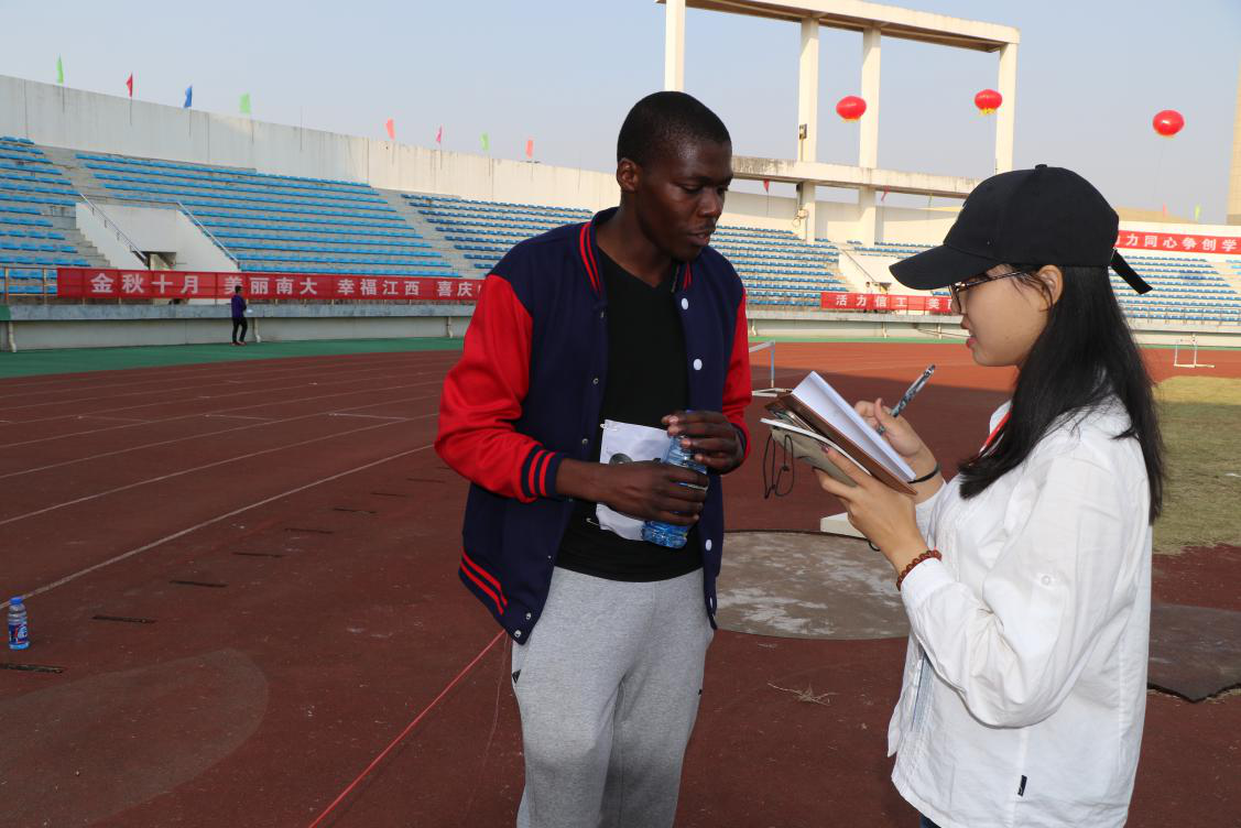 来自国际交流学院的他叶晓阳远离家乡,却收获了来自同学和辅导员的鼓励。“我的同学说我很good,以我的成绩一定能参加奥运会的。”操着一口不太流利的普通话,叶晓阳笑着说。站在他旁边的朋友听说他破了纪录,给了他一个大大的拥抱,并竖起拇指连声说:“Good,good.”