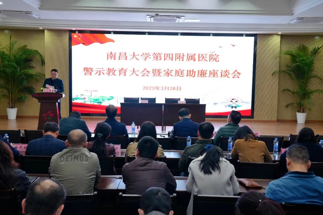 本网讯(第四附属医院)3月28日下午,四附院召开警示教育大会暨家庭助廉座谈会,深入贯彻落实党的二十大精神和习近平总书记关于注重家庭家教家风建设的重要论述,切实加强新时代廉洁文化建设,进一步教育引导全院上下广大党员干部和家属始终擦亮绝对忠诚、绝对纯洁的政治底色,争当干事立业、干净立身的示范标杆,树好清正廉洁、清风传家的优良形象,廉洁修身、廉洁齐家,凝心聚力共同维护医院山清水秀、海晏河清的政治生态。会议邀请了重点部门干部家属代表参加,院长楼小亮主持会议,党委副书记陈南萍出席并讲话。