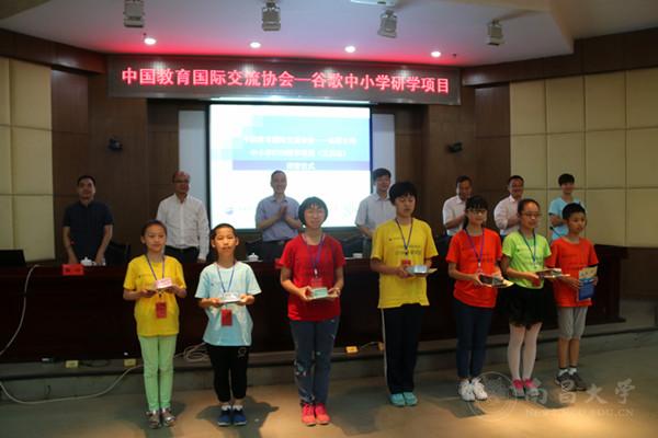 本网讯(国际事务部)14日上午,中国教育国际交流协会——谷歌公司中小学STEM研学项目(江西站)闭幕仪式在我校举行。中国教育国际交流协会秘书长生建学、江西省教育厅副巡视员叶宝凌、南昌大学副校长朱友林、上犹县委副书记副县长余有根、上犹县一小、二小、二中的师生共计100余人参加了此次闭幕仪式。三天的活动,同学们分别参观了江西省博物馆、江西省科技馆、腾王阁、南昌大学前湖校区,南昌大学生物博物馆,全面了解我省的历史、人文、科技发展。